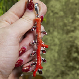 Get ready for some Root Chakra activation and healing with this Red Coral and Garnet gemstone. Set in .925 silver with an open back, this offering features a piece of red coral with eight small garnets. Red coral is a crystal of fertility, power, strength,...